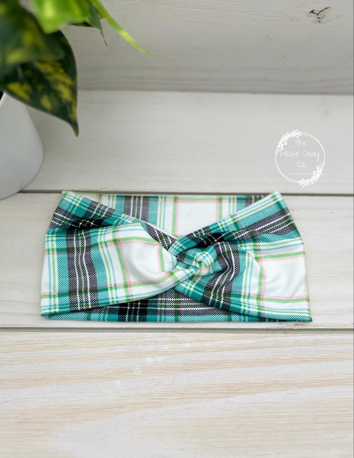 Jade Green Plaid Front Knot Headband