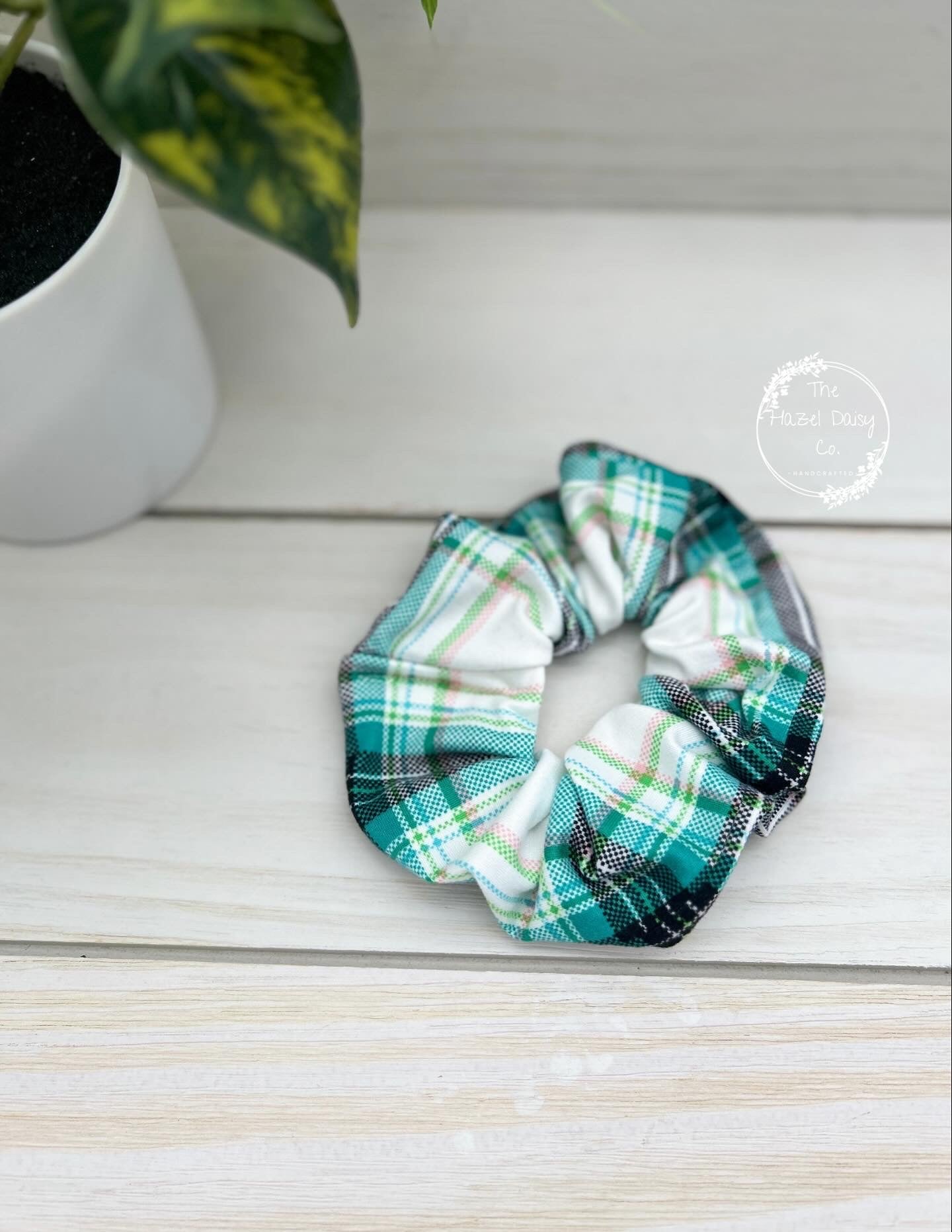Jade Green Plaid Scrunchie